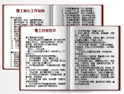 經(jīng)過二十余年發(fā)展,鷺工形成自己的品牌文化:《鷺工經(jīng)營哲學》、《愛心工作指南》、《羊皮卷》、《毛澤東思想》為一體的鷺工文化。同時,圍繞鷺工文化開展豐富多彩的集體活動。例如鷺工運動會、員工生日會、拓展活動、讀書會、慈善基金會、《精英培訓班》等系列活動。
