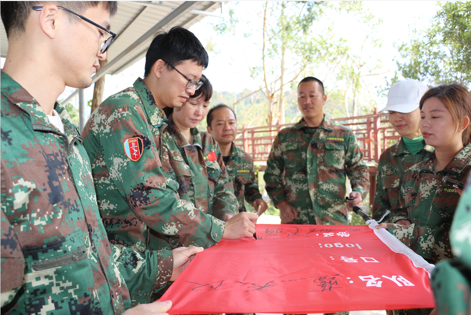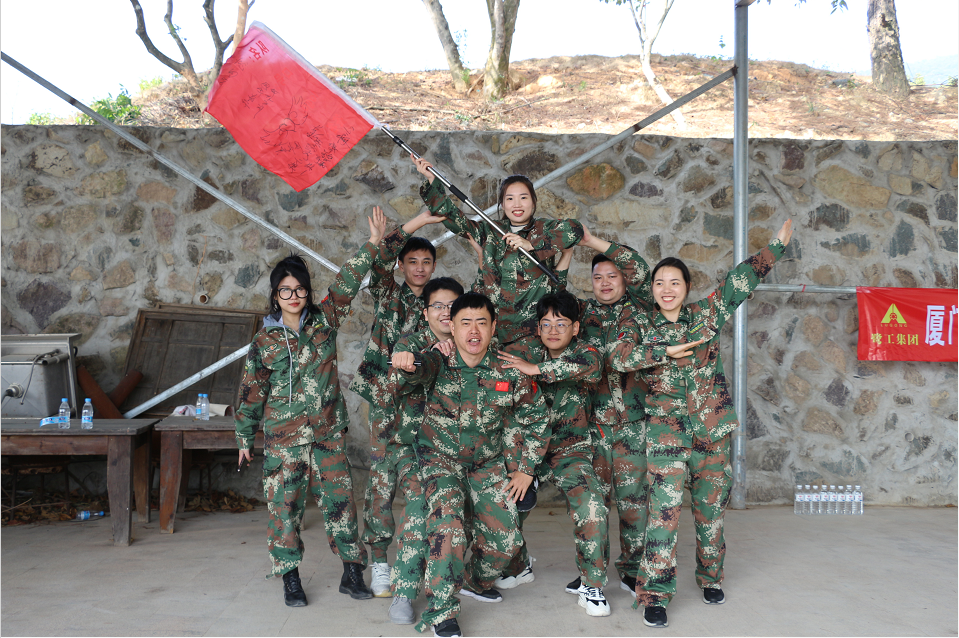 分好組隊(duì)后,集思廣益制作隊(duì)旗、隊(duì)名、口號(hào)、簽名...忘記我們的職位、忘記我們的年齡,甚至是從未想過的“使一人離開地面50公分的合照”而這都是大家關(guān)系破冰的重錐。