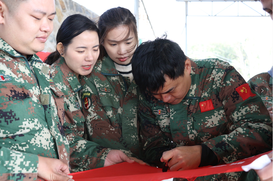 良好的訓(xùn)練從精氣神開始改變,今天團(tuán)建的序幕由換上軍訓(xùn)服來拉開。整齊有序的領(lǐng)取服裝,所有人換服裝的時(shí)間僅僅只有六分鐘,緊迫的時(shí)間里大家完成自己的服裝后便開始幫助那些沒完成的人。一紐一扣,均是大家戰(zhàn)友情分的醞釀。